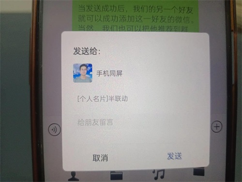 当发送成功后,我们的另一个好友就可以成功添加这一好友的微信。当然,我们也可以把他推荐到群里,方法也是一样的。