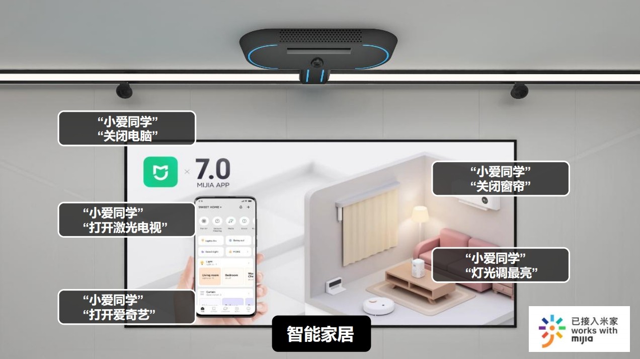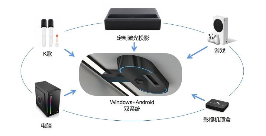 主机内集成了电脑、激光投影、供电系统、网络WIFI、音响功放等,不用吊顶无需布线,甚至电视柜都可以不用,所有管线在发光线条内部走线,不积尘、不挡光,环境更简洁,空间更宽敞。