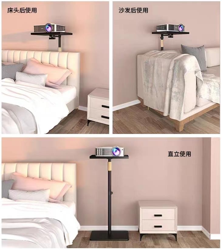 短焦正装是目前最流行的投影方式,因为它美观度最高,把其它设备集中放在电视柜,连接非常方便,维护也更简单。但是一般高清的短焦投影仪宽度在46厘米,加上离墙距离32厘米,整体离墙近78厘米,一般电视柜不到40厘米宽度,因此需要增加一个伸缩台,使用时把它拉到合适位置。