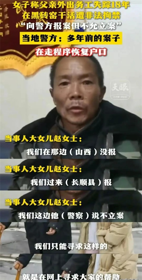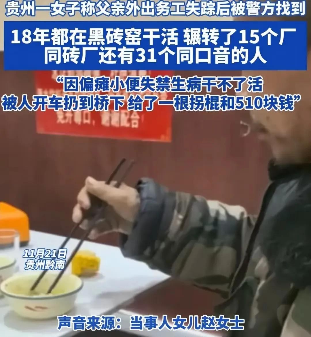 今天,我们要讲述的,就是一位贵州女子历经18年艰辛,终于找到失踪父亲,却发现他被困于黑砖窑的感人至深又令人愤怒的故事。