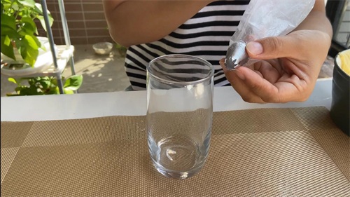 把大号裱花嘴装进裱花袋,裱花袋套在杯子上便于装入面糊。