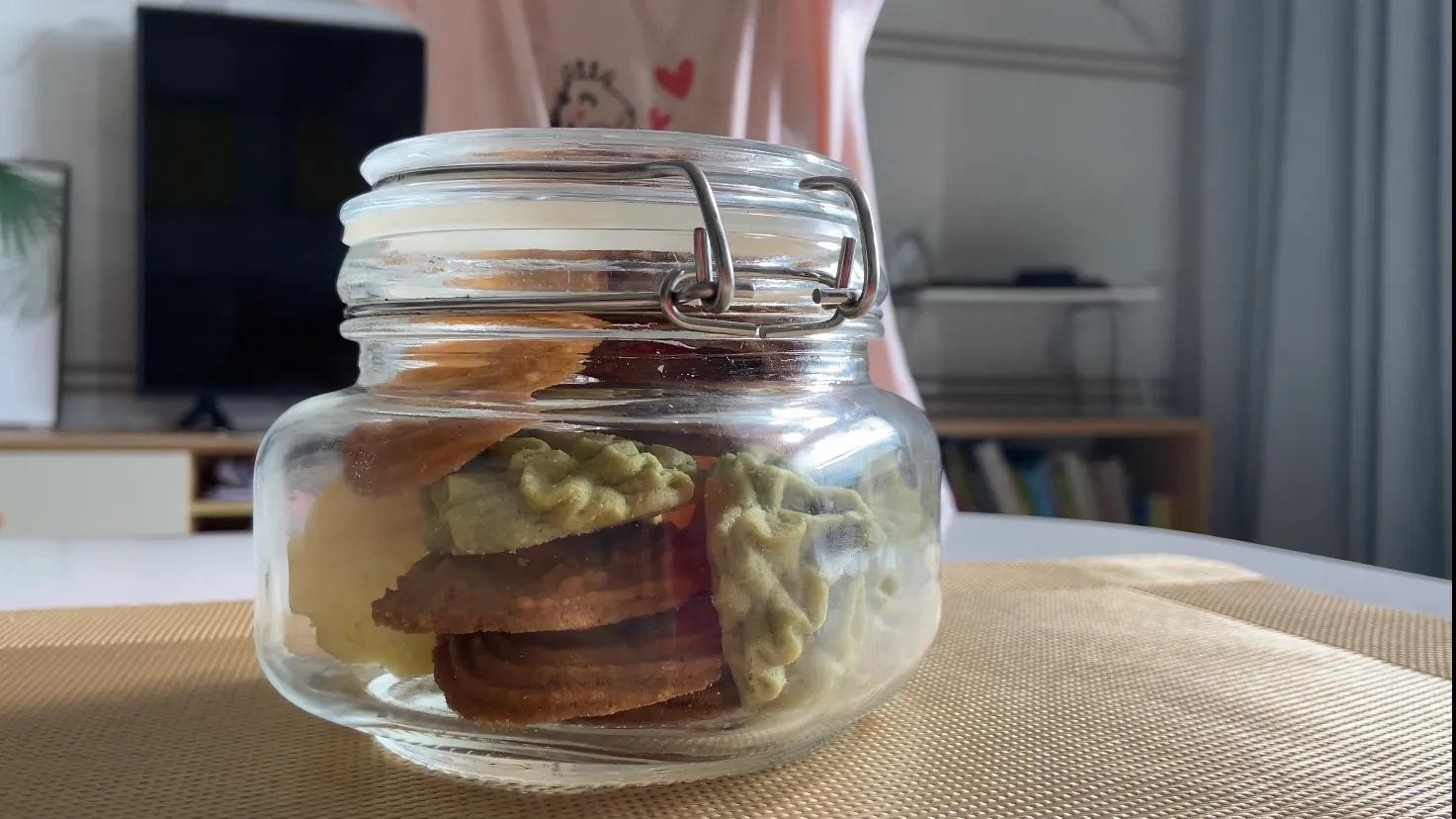 我们的曲奇饼干就这样做好了,吃不完的装进密封罐里慢慢吃。你看会了吗?眼睛看会了就动手试试吧!