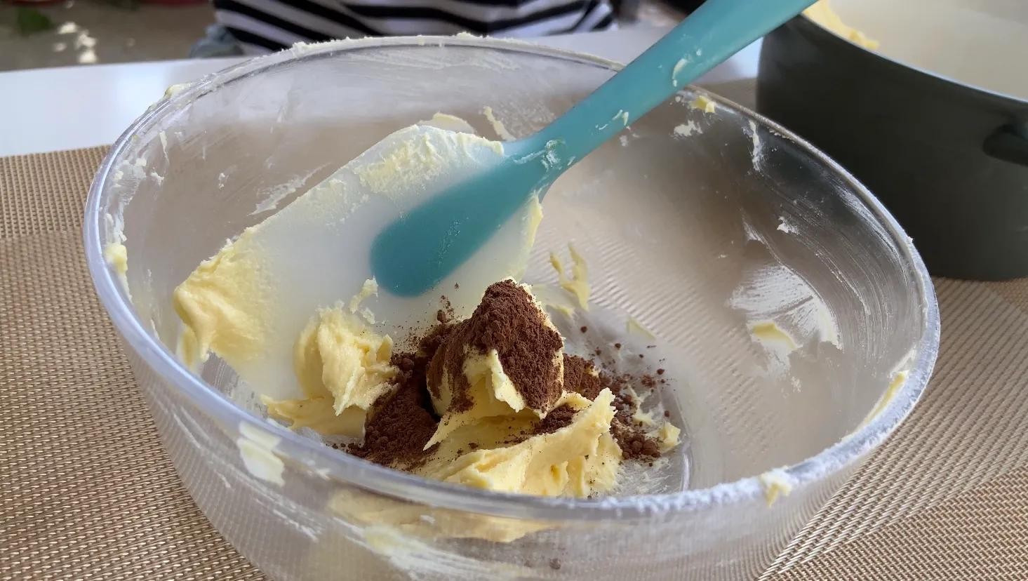 面糊分开两份,一份加入2克可可粉,混合均匀。