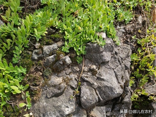 今天我们要了解的这种:垂盆草它喜欢生长在大树遮阴的石头上面,因为石头处湿润温暖。在生长垂盆草的周边还生长着很多青苔,垂盆草的叶片厚实属于多年生根茎植物。叶轮生、茎细,匍匐生长,因为跟青苔生长在一起所以水分比较多,会长的很茂盛,导致它的茎上面也会有根的。