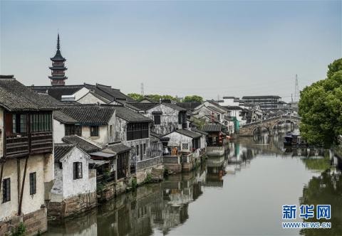 千灯镇景色(4月26日摄)。江苏省昆山市千灯镇是有2500多年历史的古镇,也是中国古老戏曲剧种昆曲的发源地。千灯镇人学昆曲、唱昆曲,蔚然成风。 新华社记者 杨磊摄