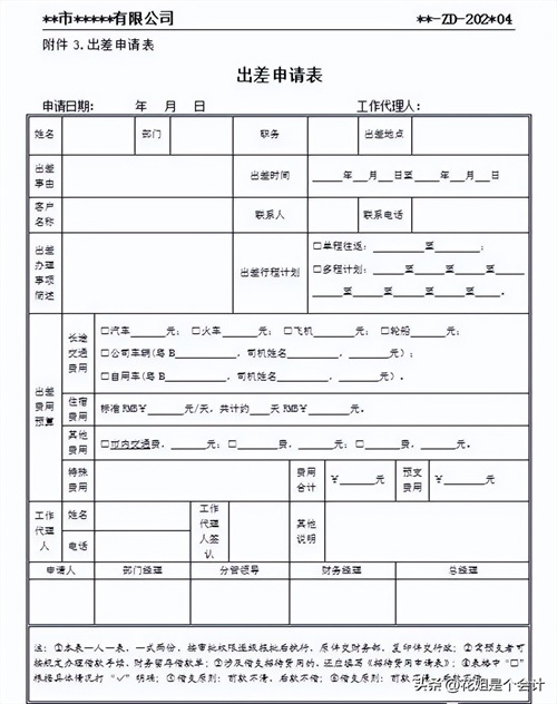 6.所有费用开支,应“先申请,后开支,再报销”的流程,财务人员应根据预算来审核和支付。相关预算外费用在发生费用前,应该先书面请求总经理,得到批准后才可以发生相关费用,坚决杜绝“先斩后奏”的现象,事先申请以总经理签名的日期为准、总经理外出时,或本人出差在外遇急情况时,应电话或邮件通知总经理,得到许可后才可进行。事后应及时补充申请表,作为报销的依据。