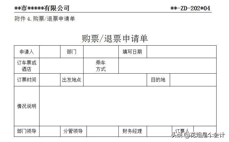 5.每办一次业务,应该填写一张报销申请单。业务招待费用、物资采购、餐费不论金额大小,一律每发生一次填写一张。笼统地在报销单上写上“×”月的费用,或多次业务单据分不清的,财务部不予受理。