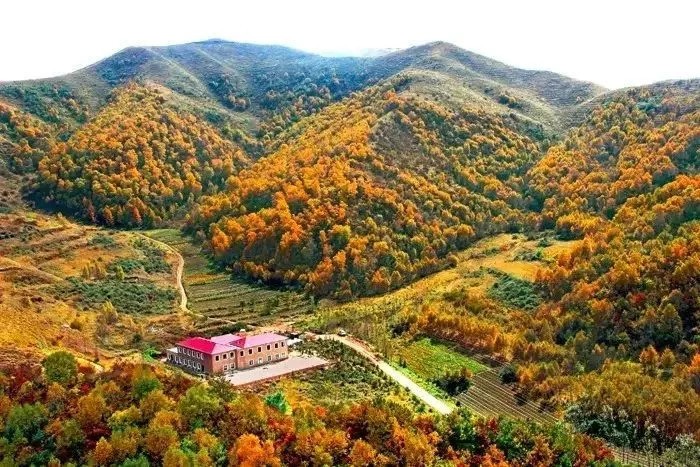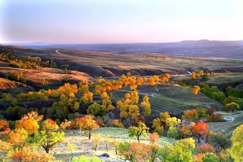 右玉县位于晋蒙交界、毛乌素沙漠边缘,境内四周环山,一到秋季,这里层林尽染,仿佛就像是上帝打翻了的调色盘,自然景观甚是壮丽。