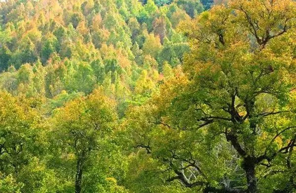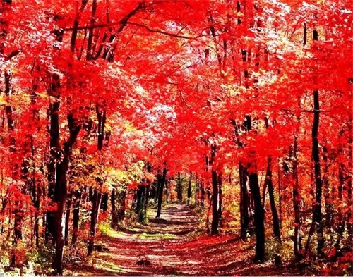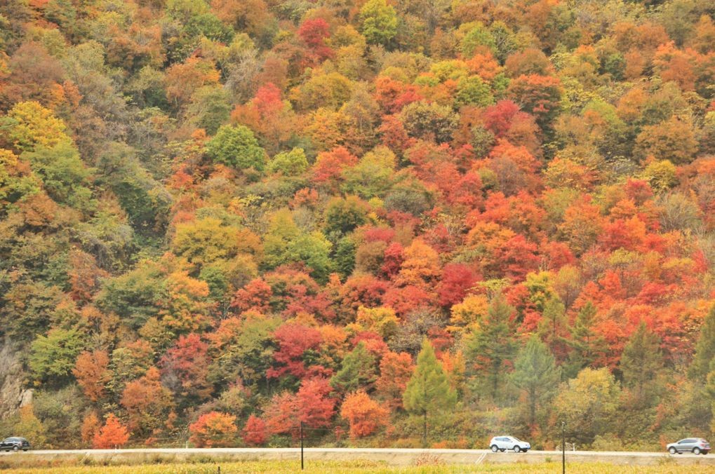 每当金秋季节,漫山遍野,层林尽染;有大红、紫红、探红、糯红、粉红、金黄、鹅黄、草绿、墨绿……