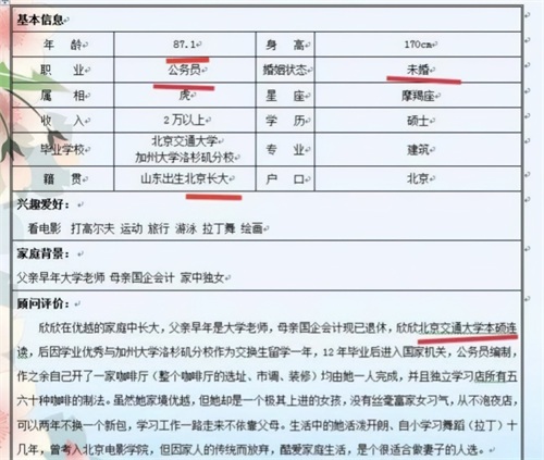离婚后的翟欣欣注册了一家婚恋网站的会员,这家网站提供专属一对一服务,费用是一年6万。彼时研究生刚毕业的翟欣欣怎么愿意拿出6万去征婚呢?