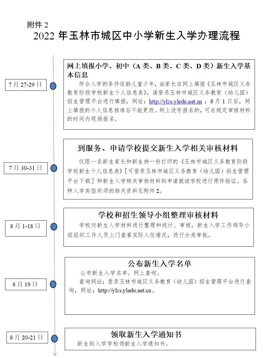 (2)在玉林市城区外小学毕业要求返回玉林市育才中学就读的学生,请于7月29日前带法定监护人的居住类房屋的不动产(房产)证、学生的户口簿、学籍信息卡等相关材料到玉林市育才中学初中教务处审核、报名。