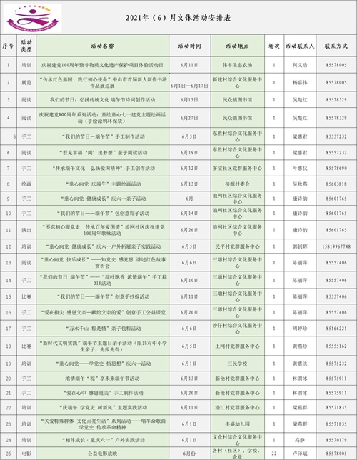 【福利】民众镇6月文体活动安排