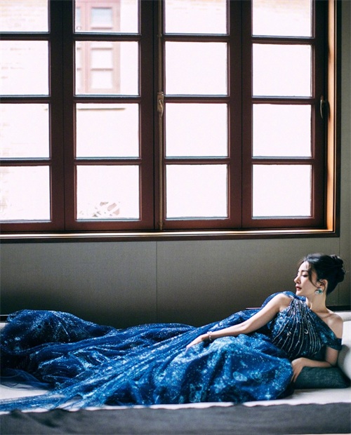 图中的杨幂身穿着一件星空拖尾长裙,耳饰也是十分吸睛,半露香肩很是性感,侧躺秀出迷人天鹅颈,身材保持的很好,全身上下没有一丝赘肉,脸上白皙细腻,侧颜也是一绝。