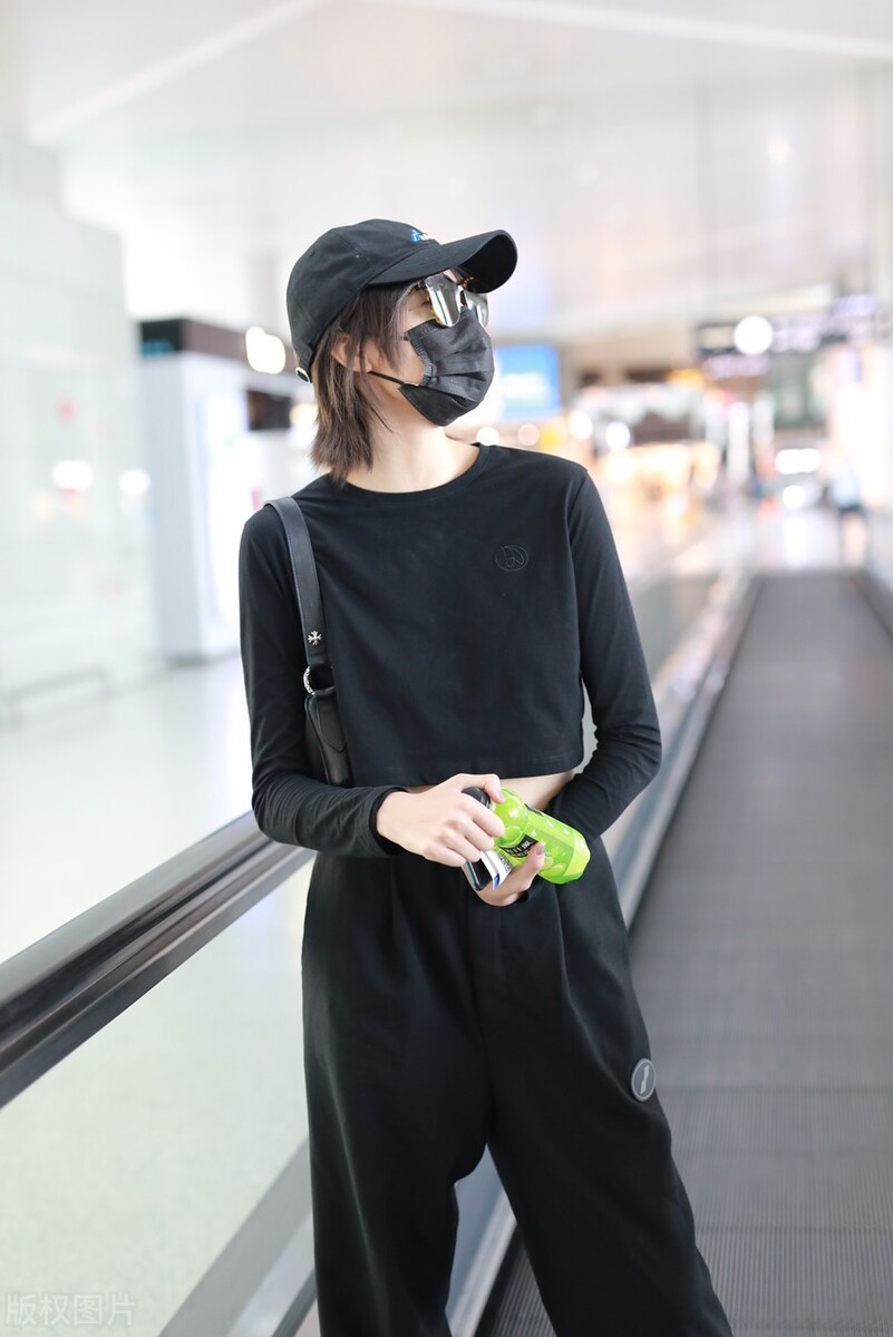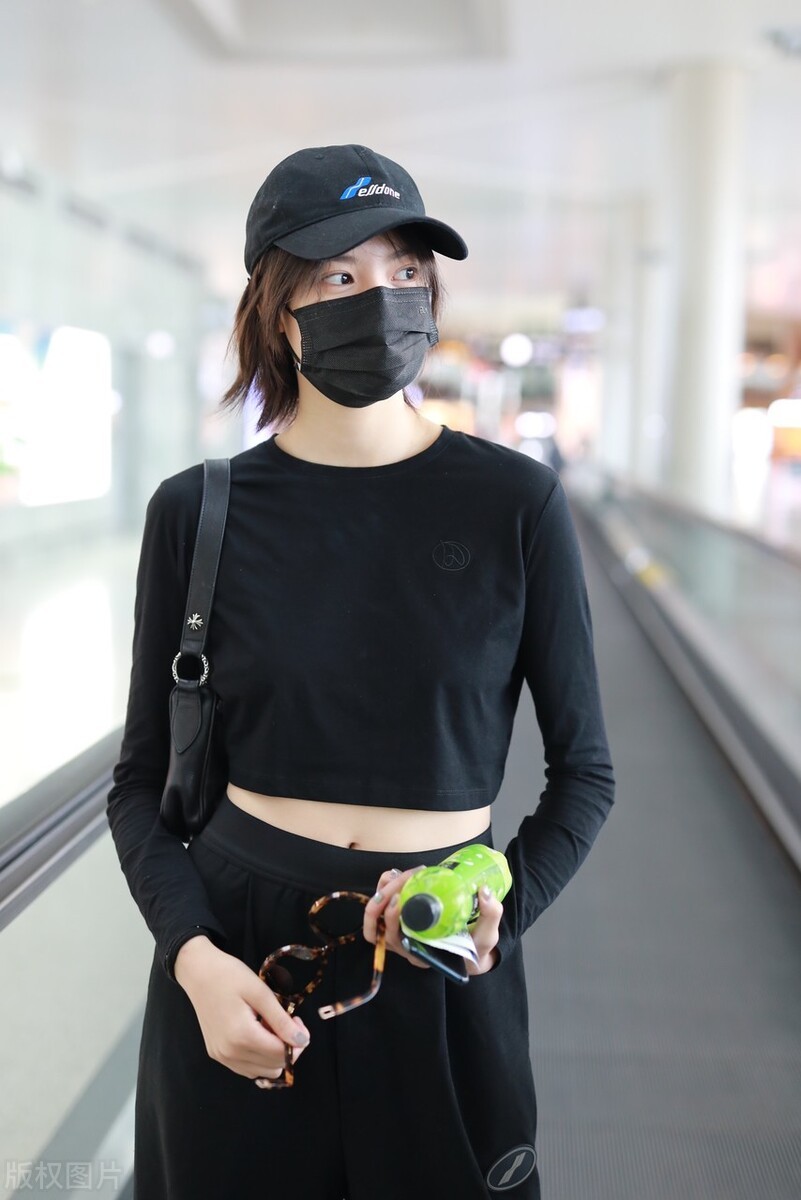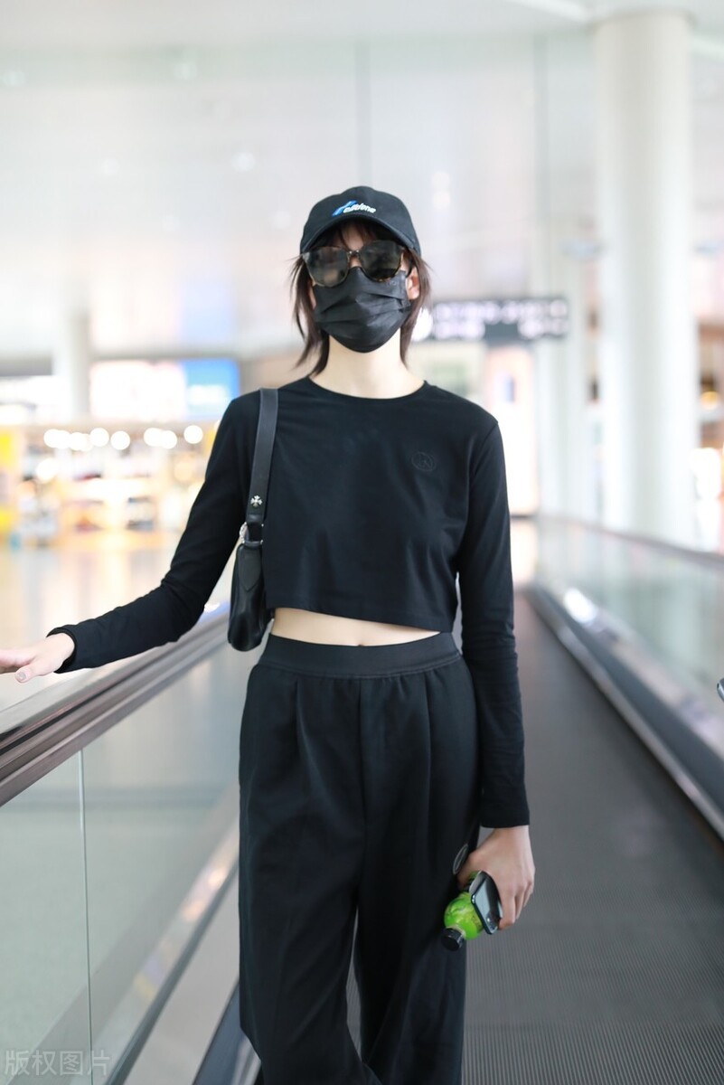 张艺上现身北京机场,她一身黑色装扮低调简约,黑色短上衣露出迷人小蛮腰。