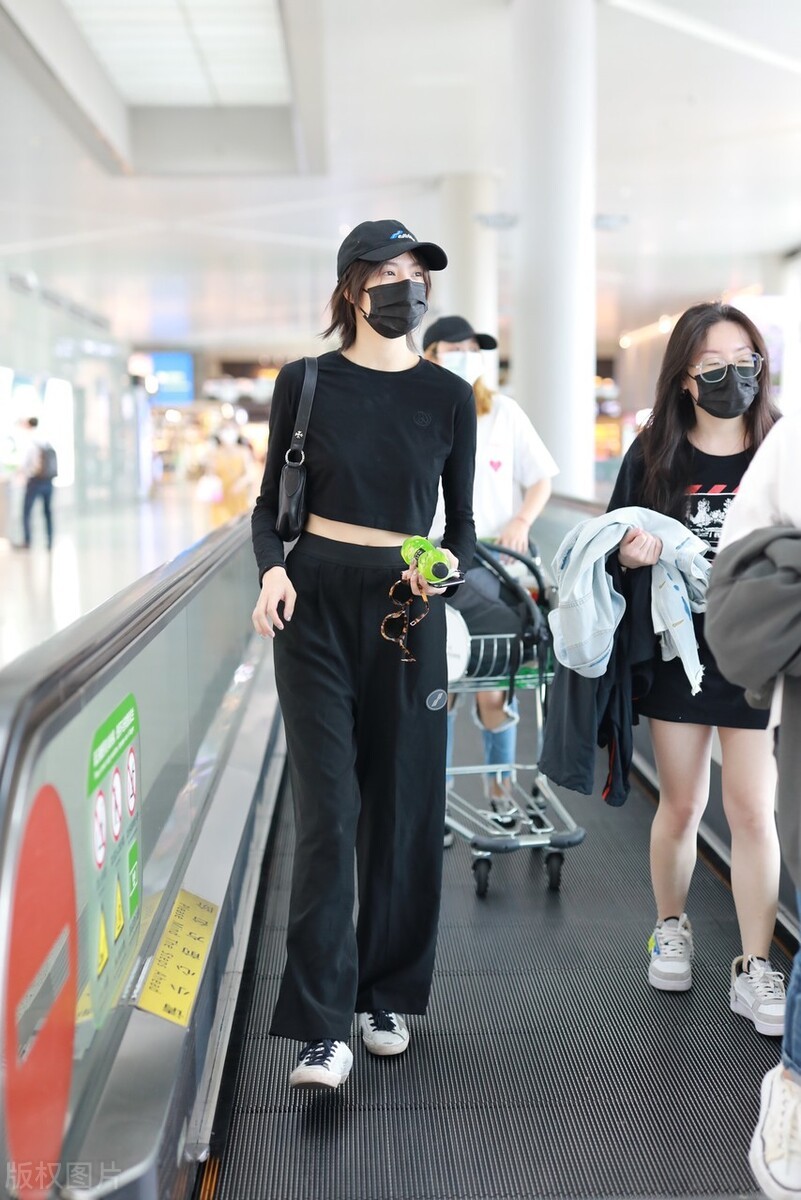 2021年6月29日,张艺上现身北京机场,她一身黑色装扮低调简约,黑色短上衣露出迷人小蛮腰。