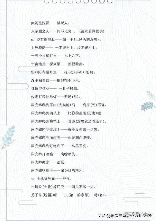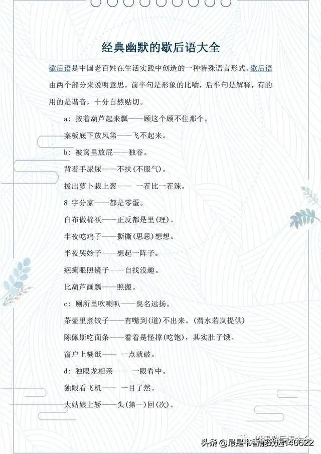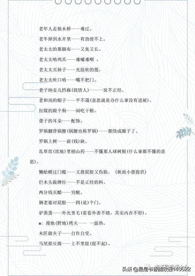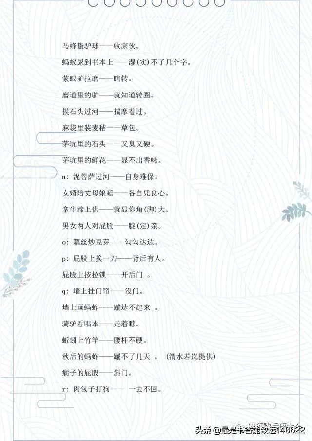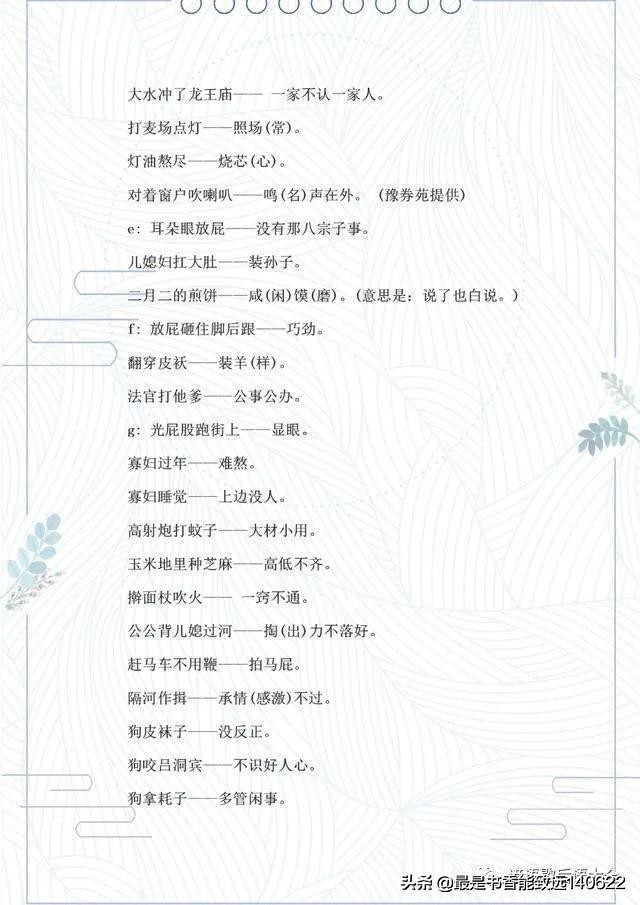 歇后语其实包含很多生活常识,也会蕴藏做人道理,所以这类知识点一定要去累积。无论是针对学习,还是增长自己的知识面。