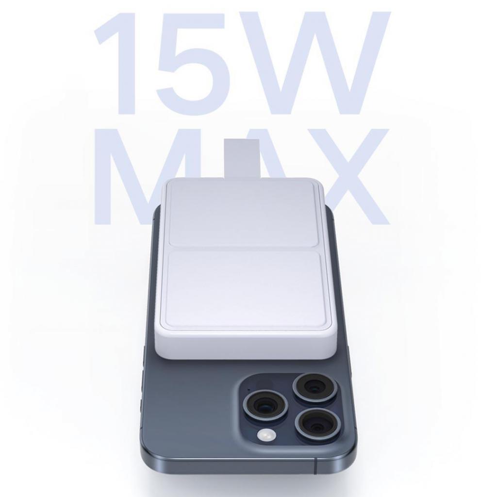 先说充电方式上的改变,这就要提到苹果的 Magsafe 磁吸无线充技术。2020 年,苹果发布了 iPhone 12 系列手机,与过去的 iPhone 最大的不同是,它首次搭载了苹果自研的 Magsafe 磁吸无线充电技术,无线充电功率可达 15W,还支持 7.5W 的 Qi 协议的无线充电。