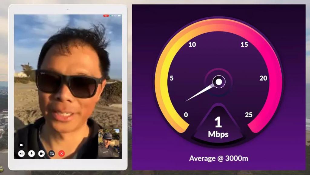 虽然带宽随着距离的增加而明显减少,但通话在 3000 米处依然保持稳定,在这个距离上,视频画面变得模糊不清,速度降至 1 Mbps,但音频质量未受影响。