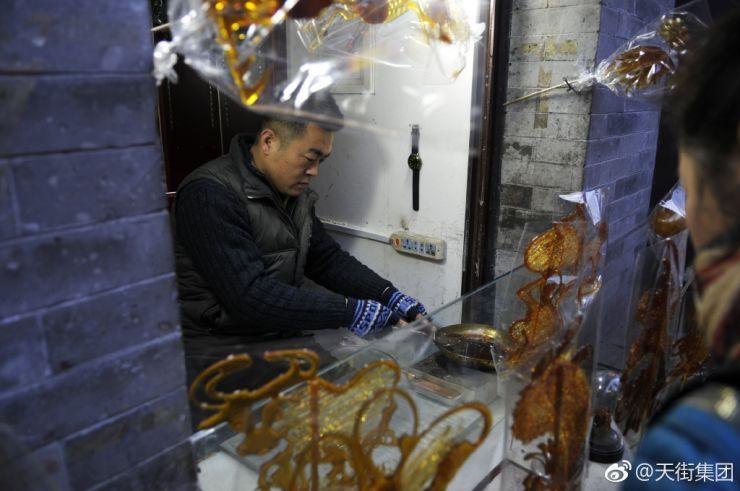 图为在前门大街,一家销售糖画的商铺。(图片来源:天街集团微博截图)