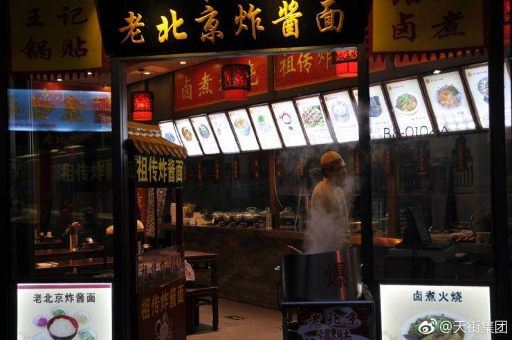 图为在前门大街,一家销售老北京炸酱面的商铺。(图片来源:天街集团微博截图)