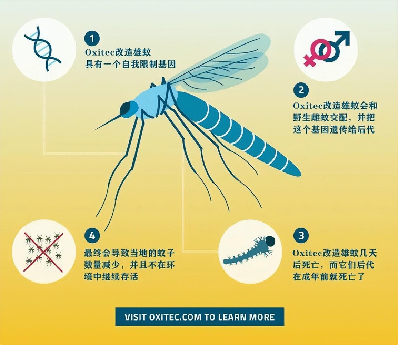 听上去是一种很理想的状态吧,其实事实也确实在朝着这个方向发展。曾经那些被放生的蚊子已经发挥出了重要的作用。早在2016-2017年的两年间,经过科学家的观测发现,在释放蚊子的试验点,相比起对照地点,野生蚊子的数量居然锐减了90%左右,可见成效还是相当显著的。