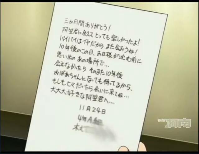 虽然木之下在三个月之后就离开了,但是给阿笠博士发了一张明信片,约定十年之后在最美好的回忆的地方相见。如果十年后没有相见,那就再等十年。