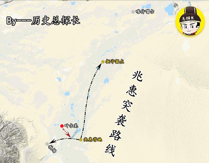 一路奇兵:副都统爱隆阿带领八百士兵,扼守在喀什噶尔和叶尔羌的中间另一路奇兵:兆惠亲自率领士兵,准备袭击叶尔羌城池南部的牧场