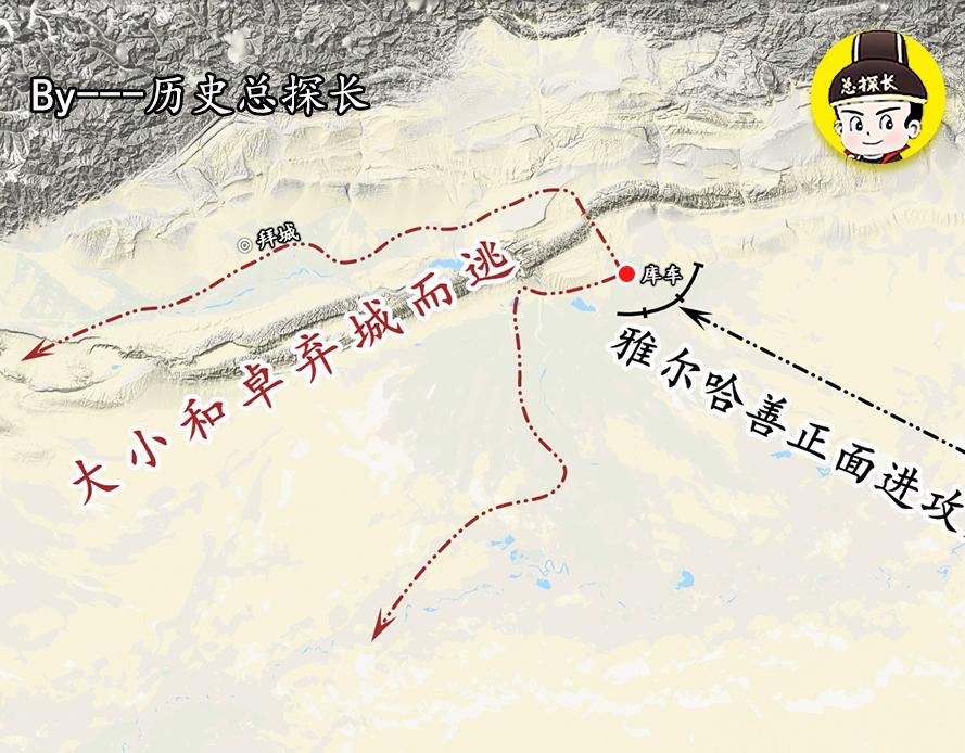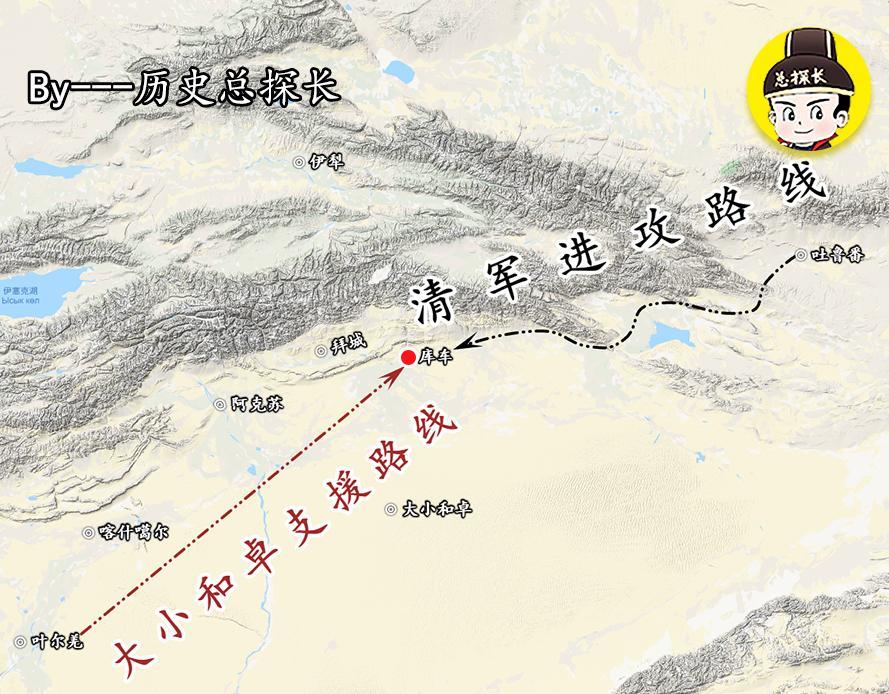 乾隆二十三年五月,乾隆皇帝亲下诏令,迫于西北之地的军事压力,无法征调更多的兵力参与平定大小和卓的叛乱,只征调了一万多的人马调拨给都统雅尔哈善,命其从吐鲁番进兵,进攻库车城。