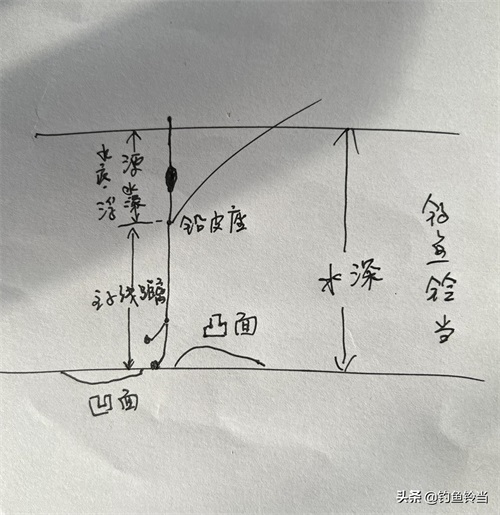第一步,重铅找底(即找水深),露出一目。