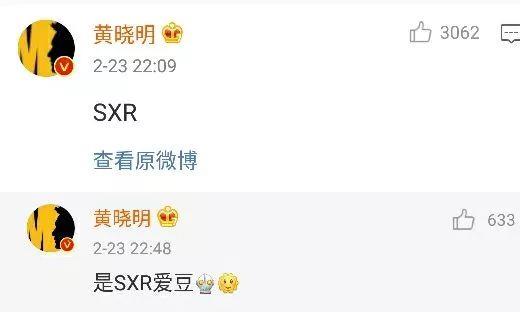 不仅如此,黄晓明还在他的微博下评论道“SXR”、“是SXR爱豆”。由于两人合作了一部剧,而且“SXR”是印证在剧中名字的缩写,两人也被质疑在卖腐。