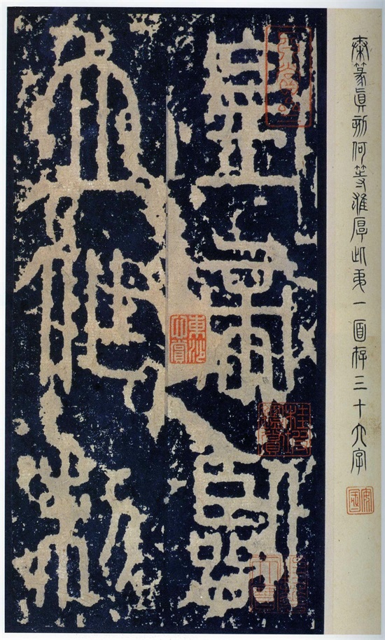 此刻石,《史记》中没有记载,只存五代时南唐的徐铉摹本,宋太宗赵光义淳化四年(公元 993年)郑文宝根据徐铉摹本重新刻石与长安,新刻石现存于陕西省西安碑林,碑阴有郑文宝题记。《峄山刻石》摹刻之甚多,而首推此石最佳。