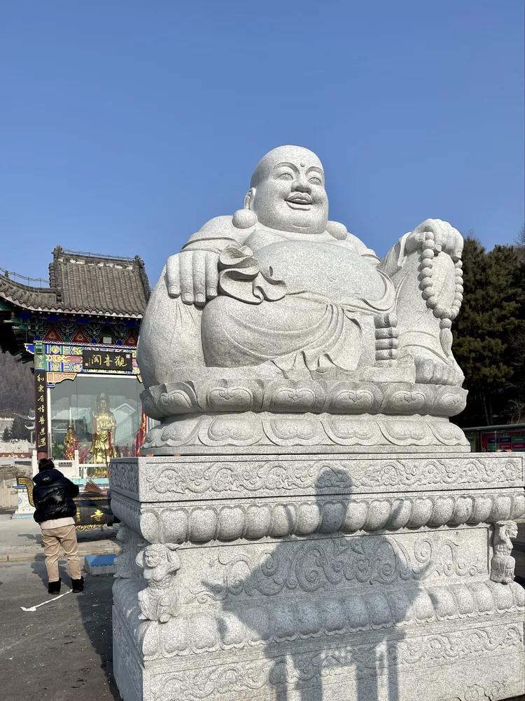 进了山门,是大广场,正中是弥勒菩萨,东边是海音如来殿、伽蓝殿、财神殿,西边是现代三层建筑的客堂和冬天的法堂。