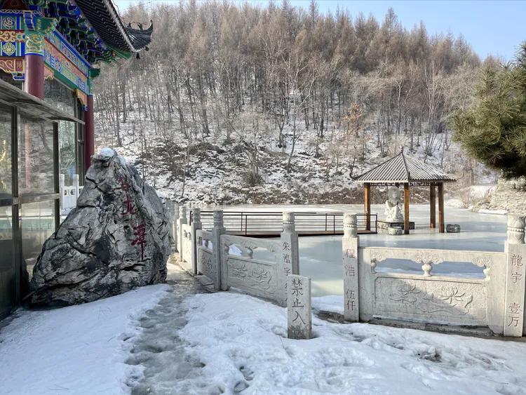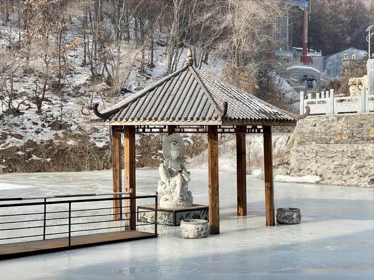 观音阁后面是乌龙潭,结冰的潭水开始解冻了