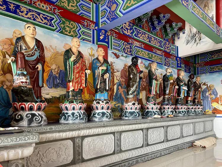 上山的路旁立了十八罗汉。
