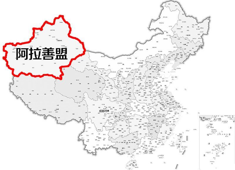 阿拉善盟,位于内蒙古最西部。东部和东北部与乌海、巴彦淖尔、鄂尔多斯相连,南部和东南部与宁夏回族自治区相连,西部和西南部与甘肃省相连,北部与蒙古接壤,边境线长735公里。