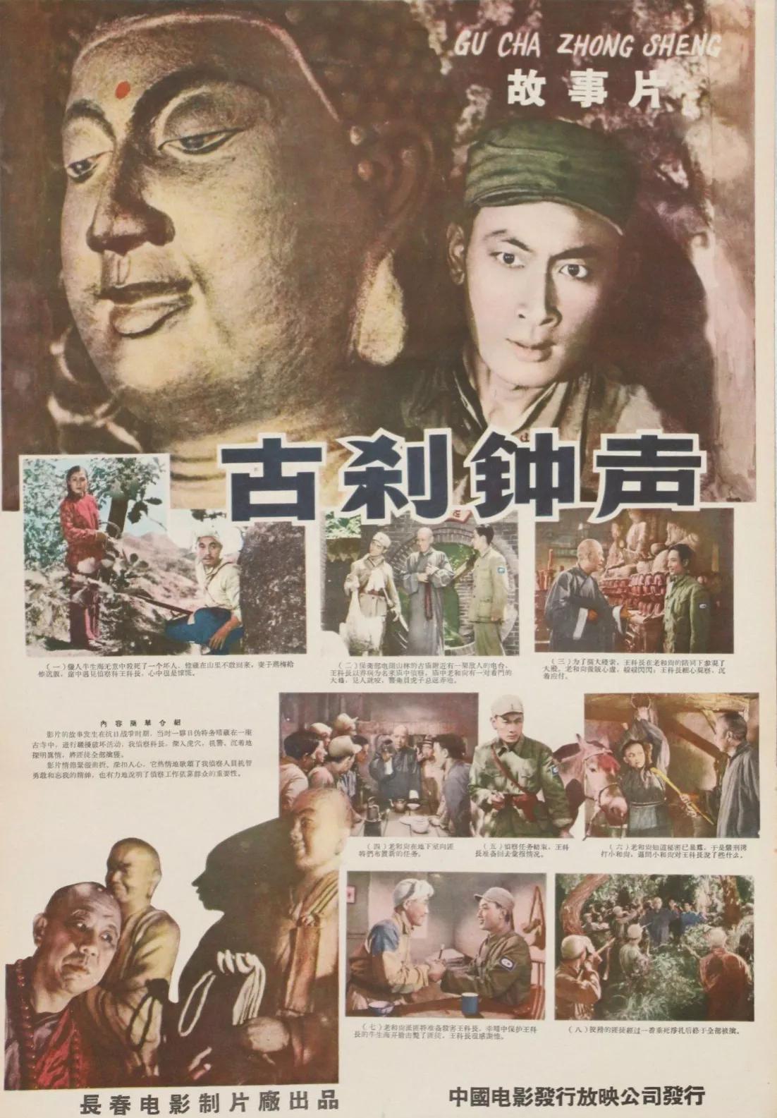 1958年长春电影制片厂拍摄的经典反特故事片《古刹钟声》,主要讲述了抗日战争时期,八路军展开搜捕行动,最终在古刹中将敌人一网打尽的故事。