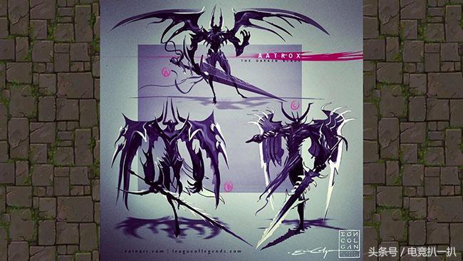 亚托克斯在2013年发布,而时隔四年后他终于迎来了第二个族人,凯隐手中的镰刀拉亚斯特。之前我们都以为暗裔一族是人类本体,但事实上在凯隐的故事中告诉我们,暗裔的本体是武器,我们看到的人类不过是他们的宿主。而所谓的剑魔,就是完全被剑灵亚托克斯完全侵蚀了。在亚托克斯有限的背景故事中,他参与了多次战争,每当亚托克斯出现就意味着死亡和战争,他曾经帮助护国军战胜了法术领主,但在那场大战活下来的所有战士,他们心目中充满黑暗,即使战争结束后都变成了一个冷酷的人类。