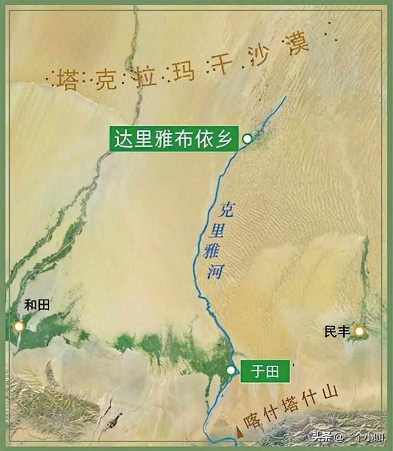 克里雅河发源于喀拉昆仑中段,顺流而下流入塔克拉玛干沙漠,在克里雅河即将消逝于沙漠的地方,孕育了一块神秘的绿洲,养育了民风古朴的克里雅人,克里雅人给自己的村落起名“达里雅布依”,意思就是“大河沿岸”,克里雅人世代生活在一百多万亩的原始胡杨林中。