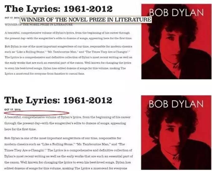 妙的是,18日那天,他的官网曾在醒目位置添加了大写的“诺贝尔文学奖得主”的字样,3日后,却又删除了。