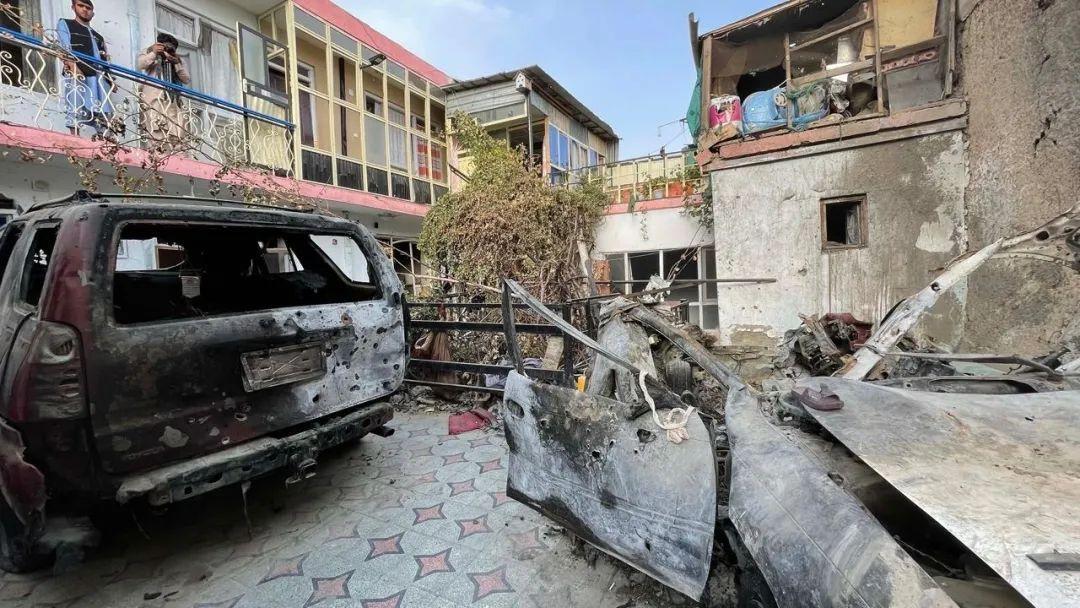 当地时间2021年9月11日,阿富汗喀布尔,美军8月29日空袭后的场景。据悉,空袭造成包括多名儿童在内的10名平民死亡。图片来源:东方IC