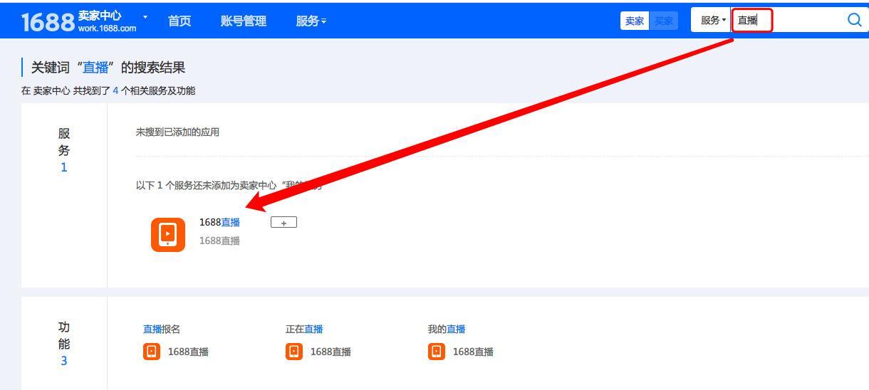 进入我的阿里,右上角搜索栏搜索“直播”,可添加直播板块,即直播中控台