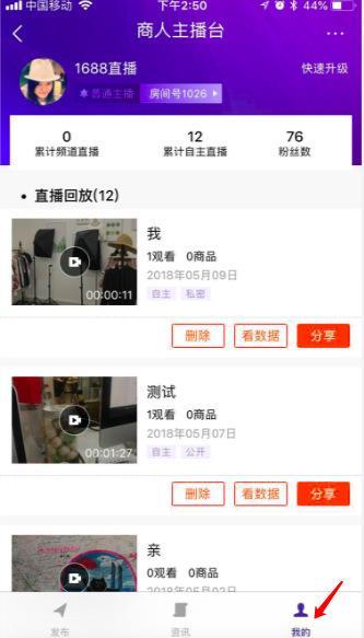 预告页创建完成后,您可以按照下图指示操作,开播或分享或删除, 注意:通过报名系统排期的预告无法手动删除,请谨慎选择报名时间,出现旷播将严格按照1688直播公约处理。