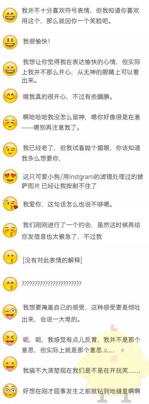 duang~的一下,小长假就只剩最后一天了,心情瞬间不美丽了,找个人聊聊天缓解缓解,各种表情肯定必不可少,可是你真的知道每个表情符号的意思吗?可不要以为别人冲你微笑都是好的,要是理解不再一个频率上