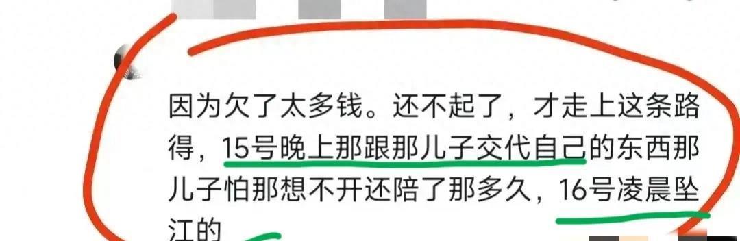 这也是她最终选择坠江的原因之一。家庭、职业、经济等多种因素综合作用,导致了她的绝望和无助,最终选择了走向极端。