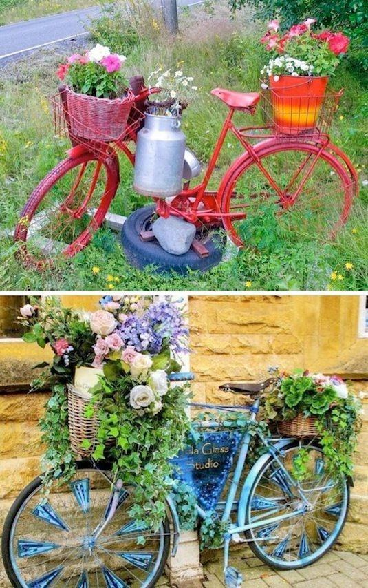 现在的自行车很大部分上被电动车汽车所取代,那么被闲置的自行车怎么处理?如果你有花园或者院子,把它摆放到其中,保持原样或者喷上合适的颜色以配合你花园的主题,然后种上合适的花草。