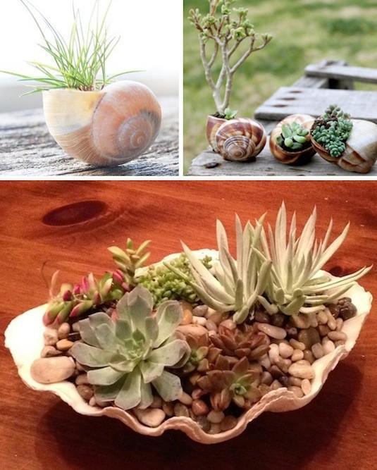 贝壳给人很清新的感觉,搭上多肉的可爱呆萌,是非常好看的桌面装饰。