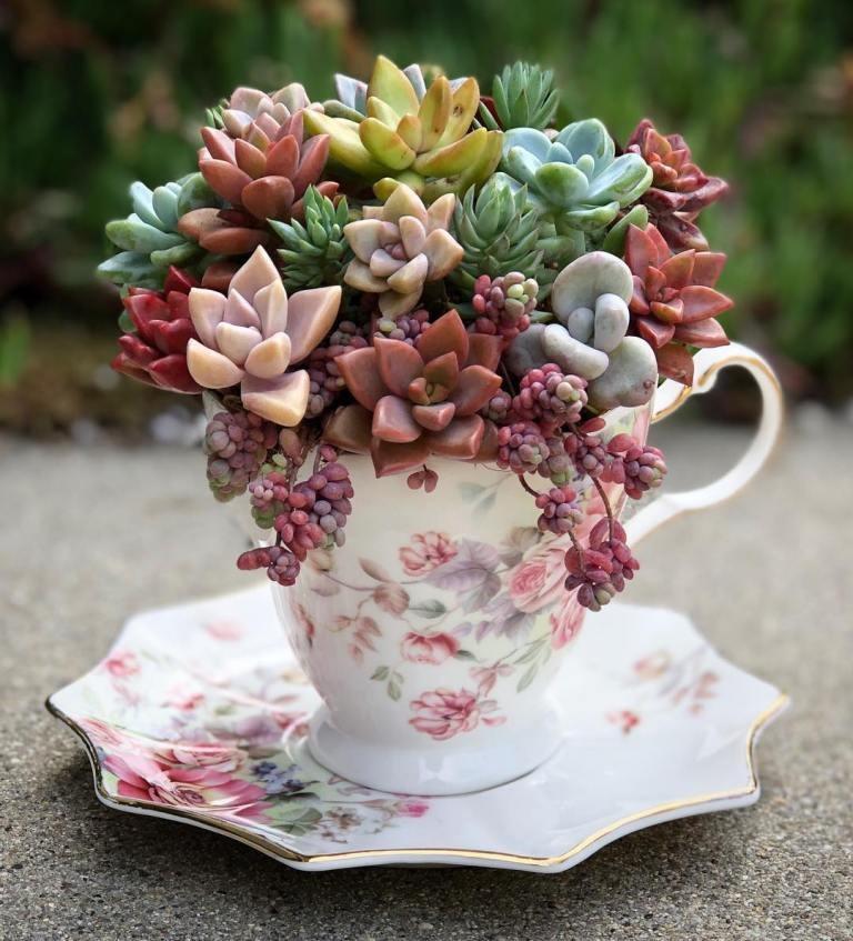 茶壶茶杯几乎是每家都有的,有金属的玻璃的紫砂的,等等。用来种花草多肉,也是很有意思的。