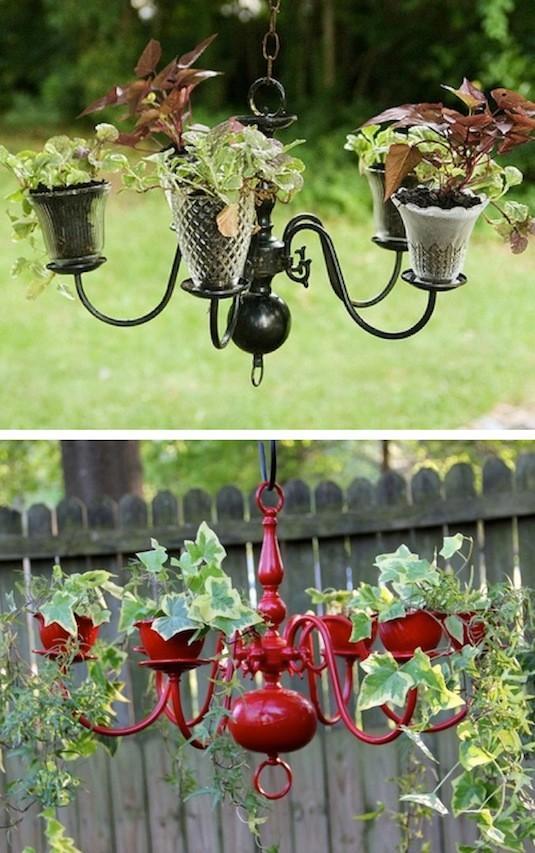 吊灯改造的花盆,可以装饰立体空间,也可以种一些悬垂类的植物,比如常春藤。