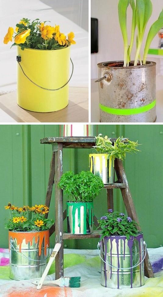 油漆桶的大小是非常适合当花盆的,只需在底部打上透水孔,或者再稍作装饰,就能直接使用了。
