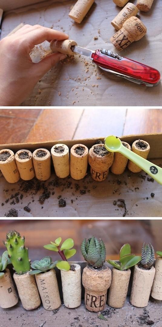 估计再也没比这个花盆还小的花盆了。软木塞,上面打一个洞,一个简单的“花盆”就做好了。因为它的迷你性,也就只能种一些小的多肉植物。但是也是因为它的个头小,可以做成冰箱贴花盆。